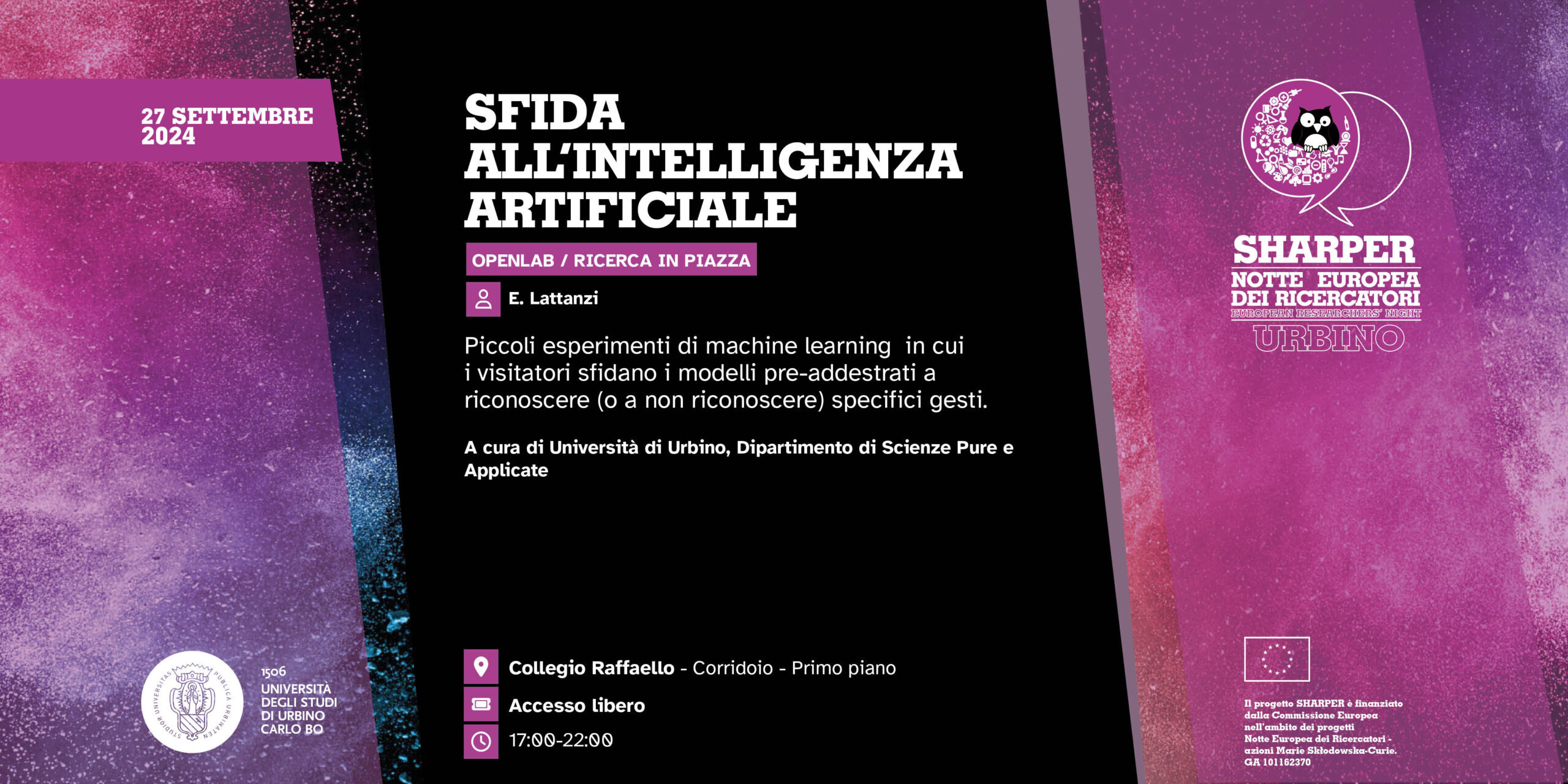 L’evento si svolgerà il 27 settembre 2024 alle ore 17:00-22:00 presso Collegio Raffaello Corridoio – Primo piano.